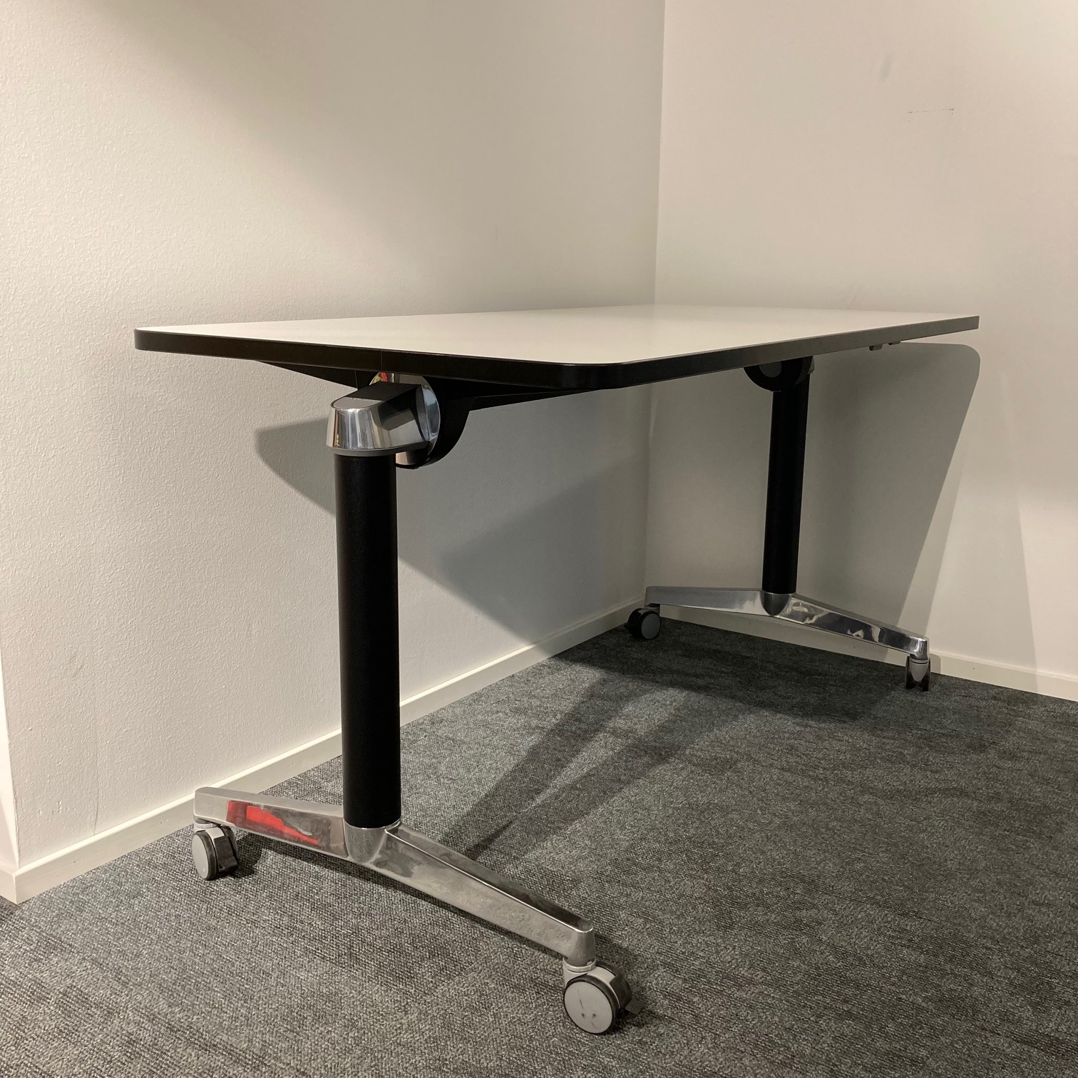 Bordsskiva i laminat (vit). Underrede i metall (aluminium).