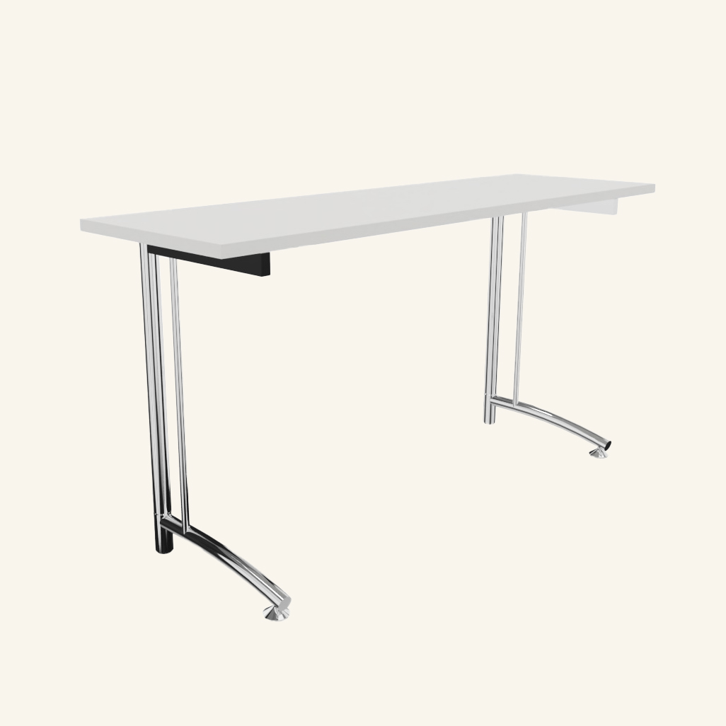 Bordsskiva i laminat (vit). Underrede i metall (krom).