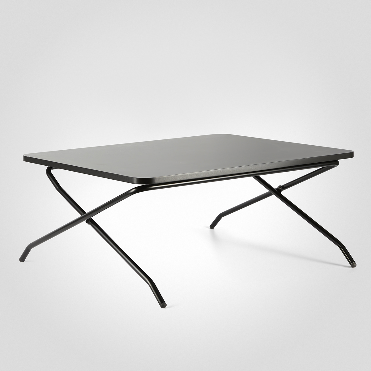 Bordsskiva i laminat (svart). Underrede i metall (svart). Höj- och sänkbart.