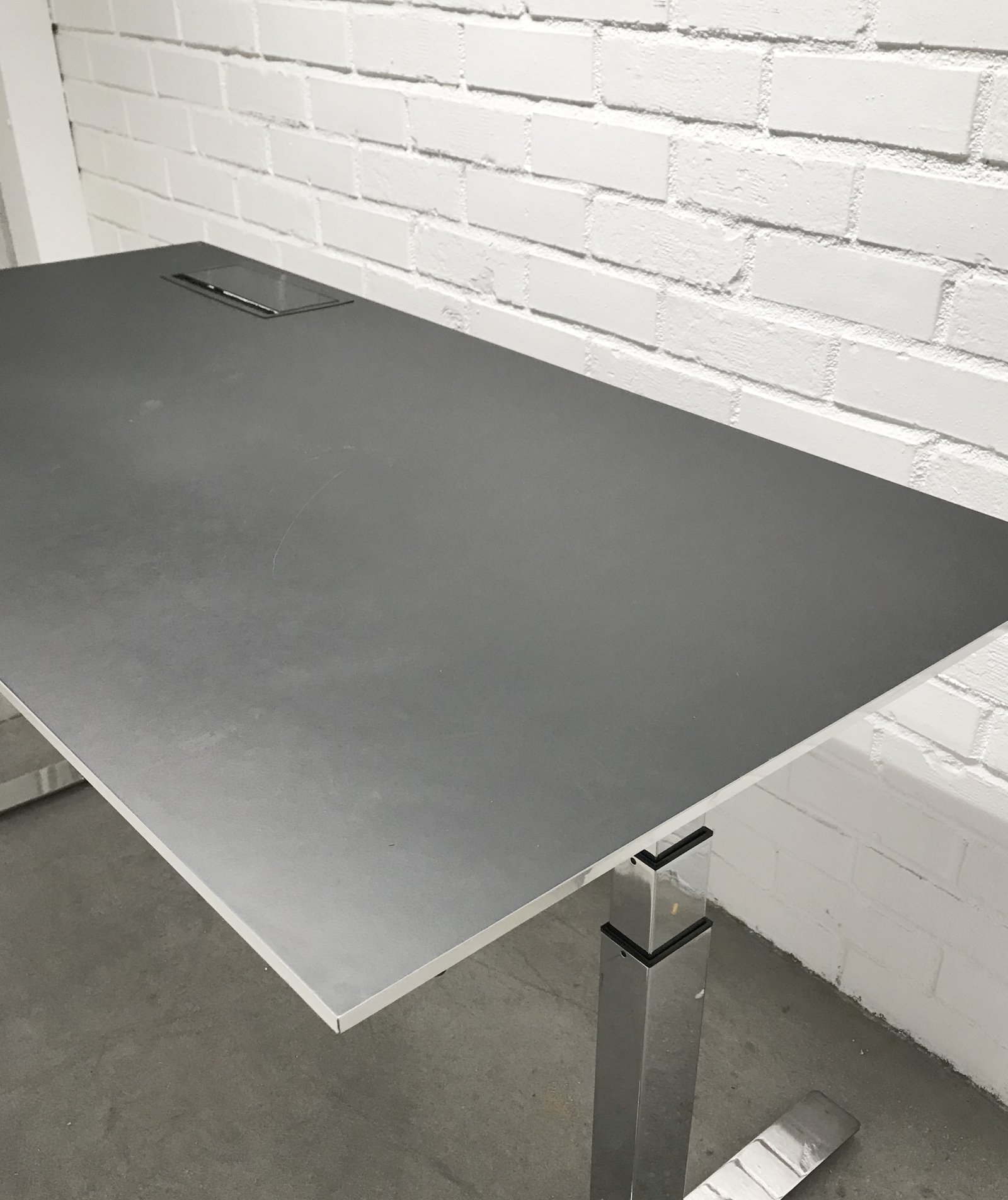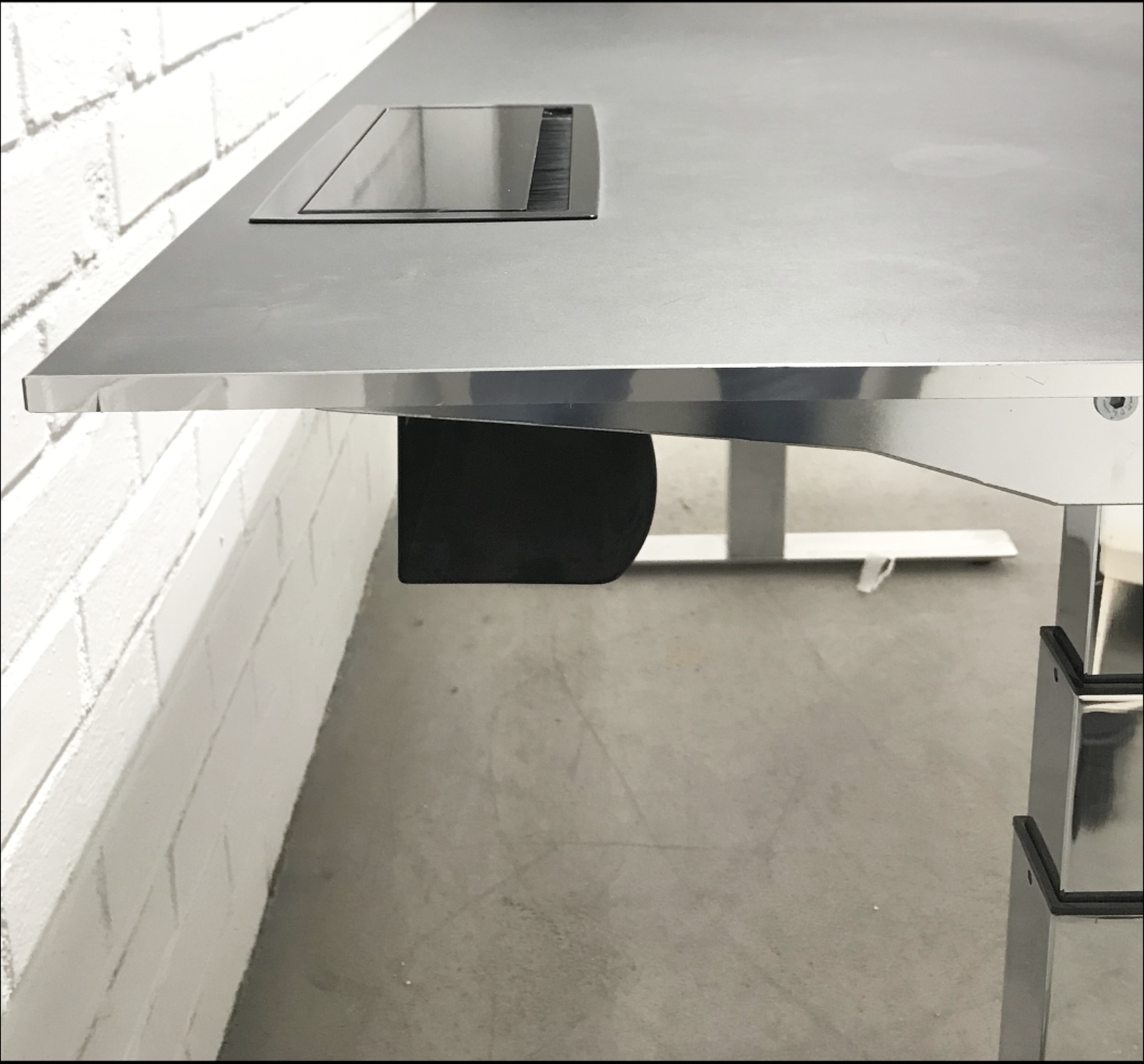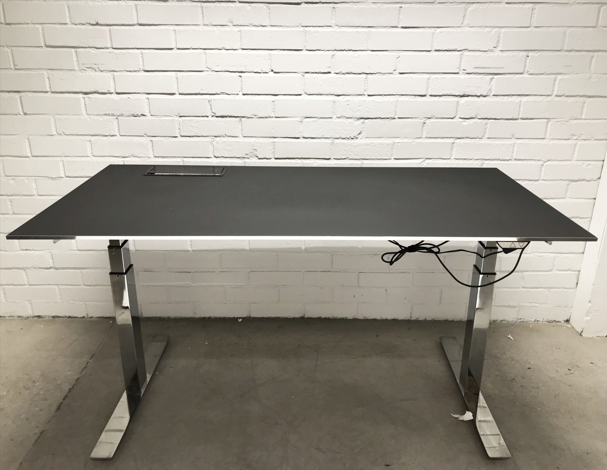 Bordsskiva i linoleum (svart). Underrede i metall (krom). Höj- och sänkbart.