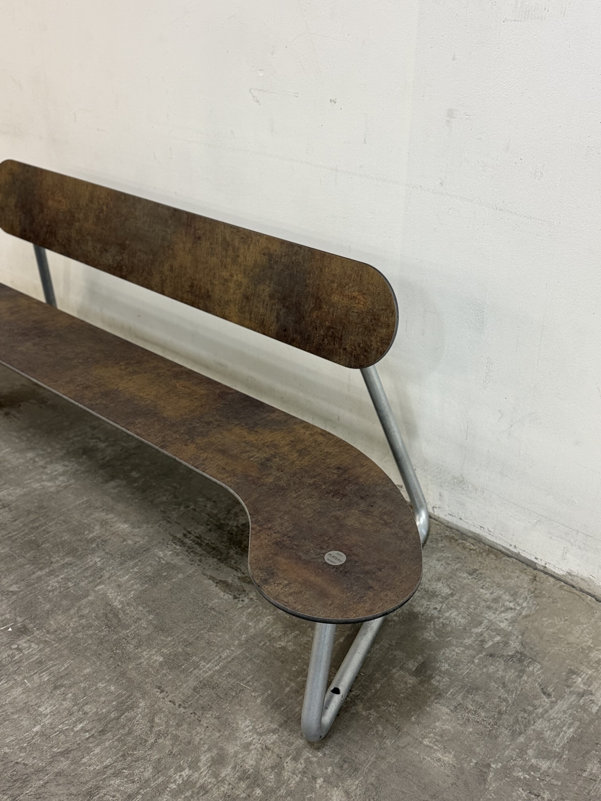 Sits och rygg i trä (brun). Medstativ i metall (aluminium).