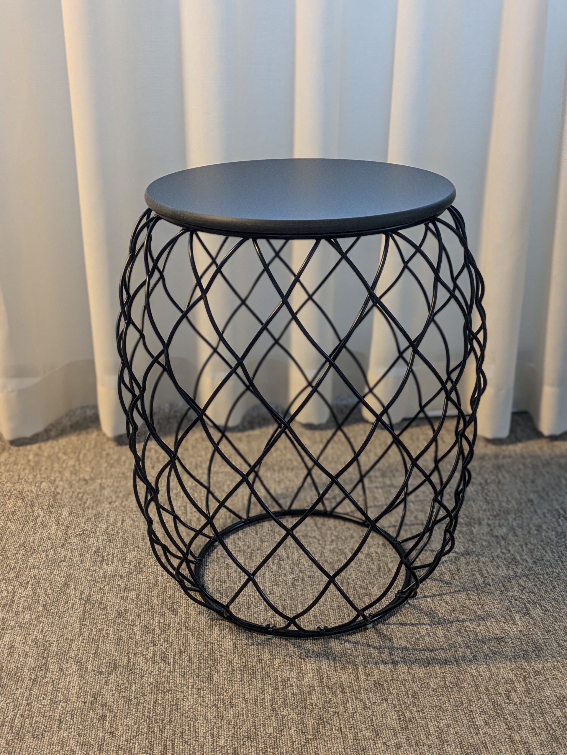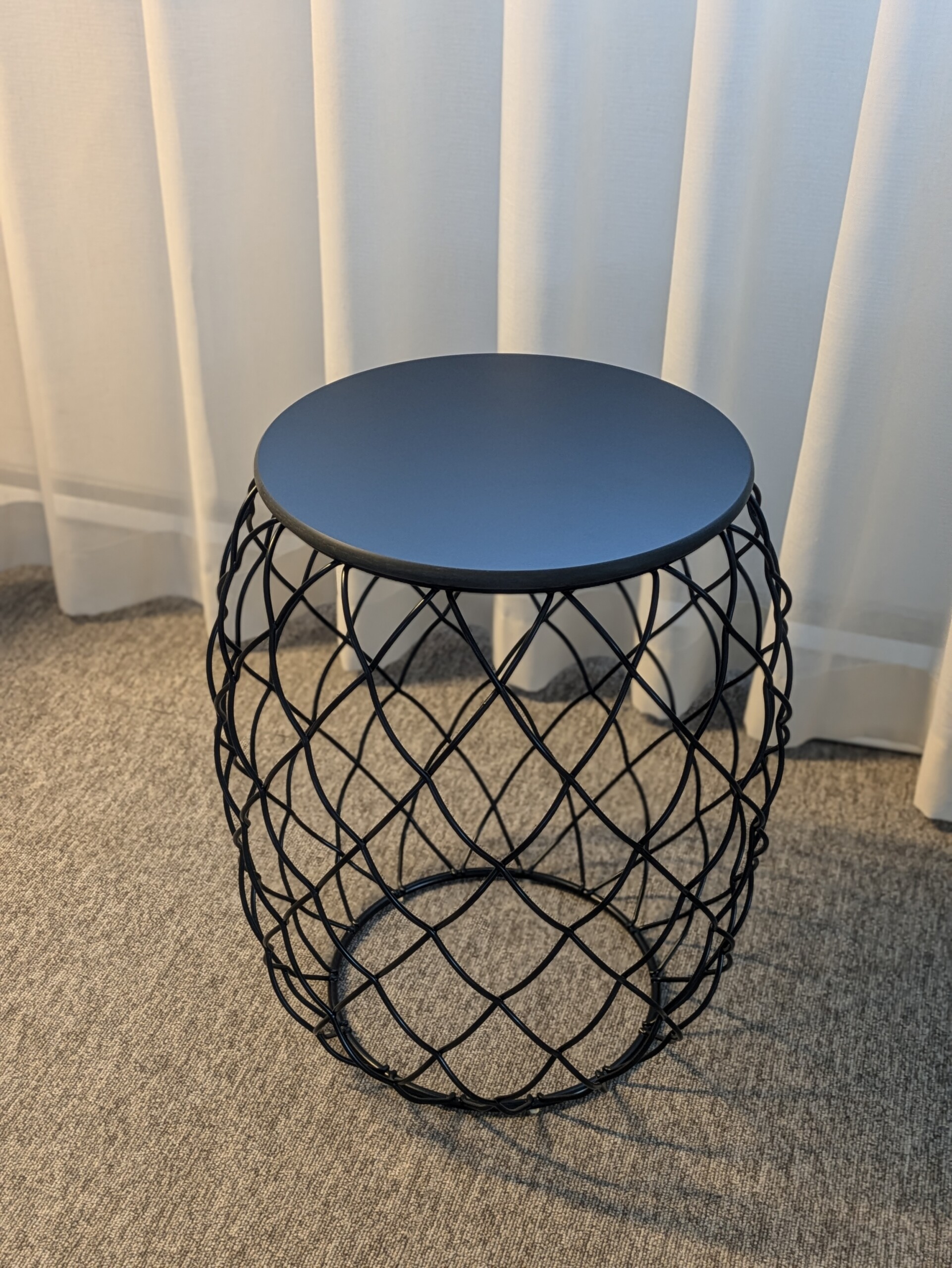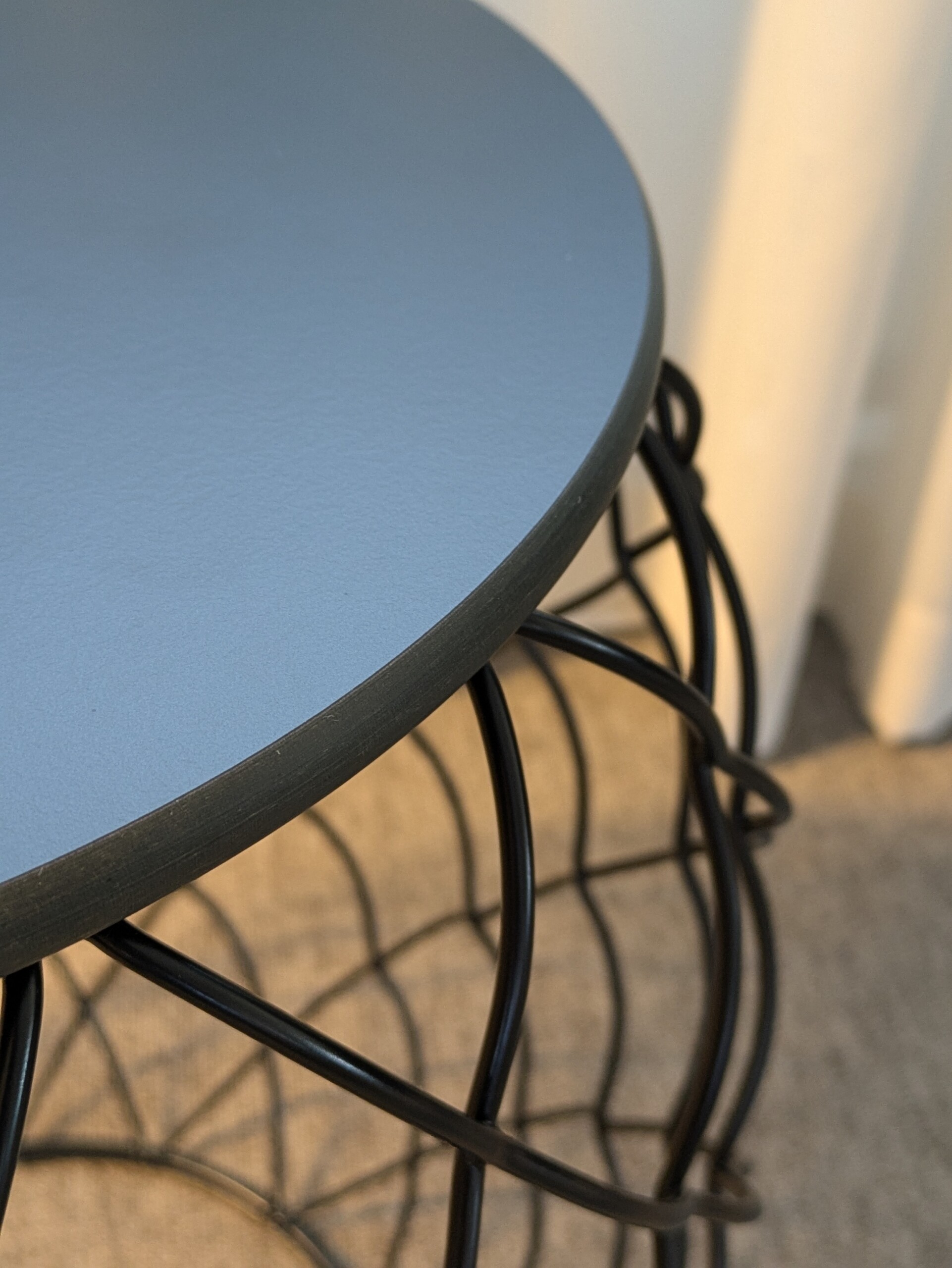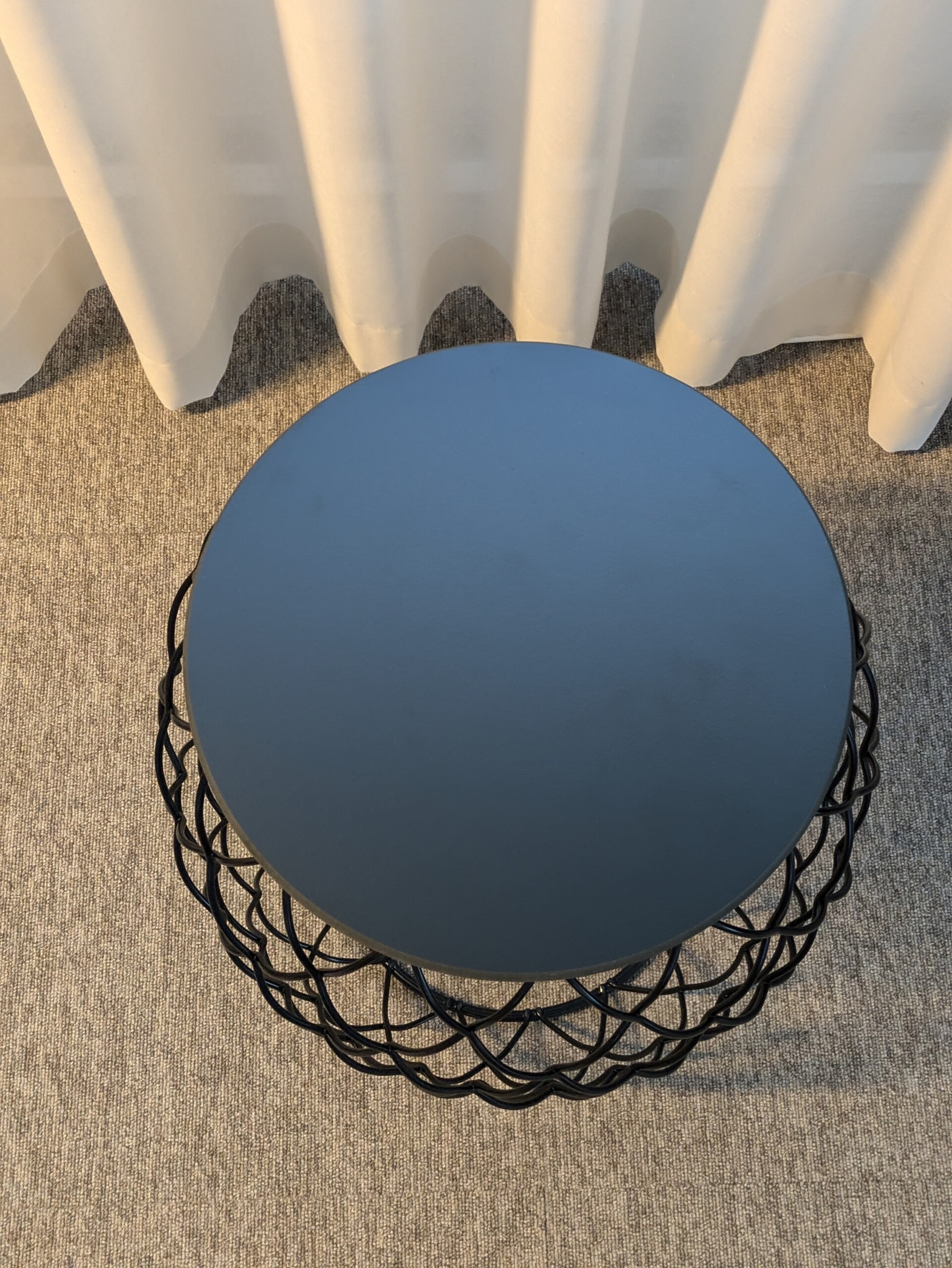 Bordsskiva i metall (svart). Underrede i metall (svart).